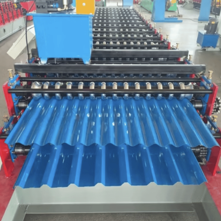 The double-layer configuration allows users to produce profiles like trapezoidal roofing, corrugated sheets, and ridge caps. It is widely used in construction industries for creating metal roofs and wall panels, especially for warehouses, factories, and commercial buildings.