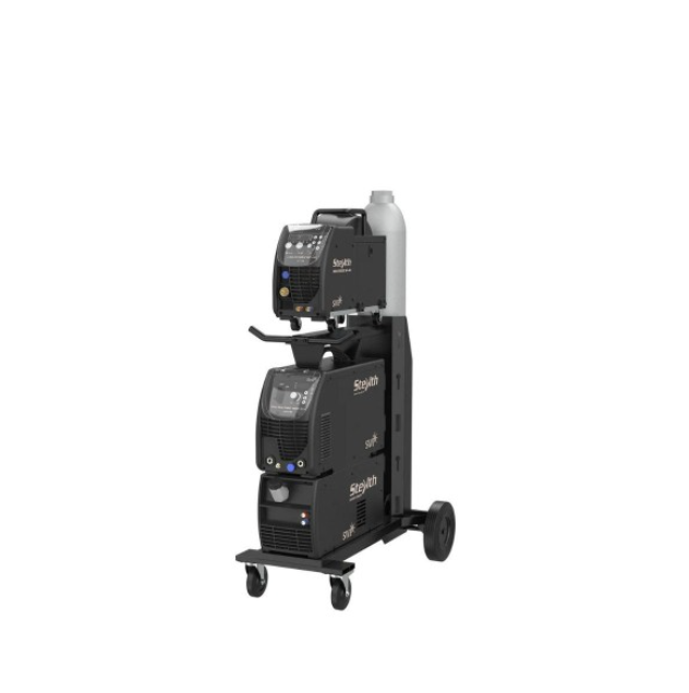 The Stealth Digi-Multi Mig 400F MIG Welding Machine Only offers precise welding with added arc stability, even at low currents. Equipped with sensors and a digital meter, it allows for variable amperage control. Includes M501-4 torch, 2068 regulator, and 5m cables. Optional 10m cables available for air and water cooled packages.